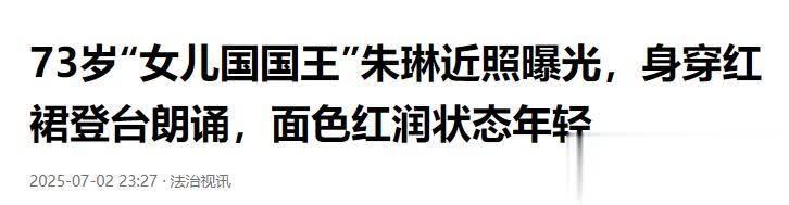 法治视讯——73岁“女儿国国王”朱琳近照曝光,身穿红裙登台朗诵,面色红润状态年轻